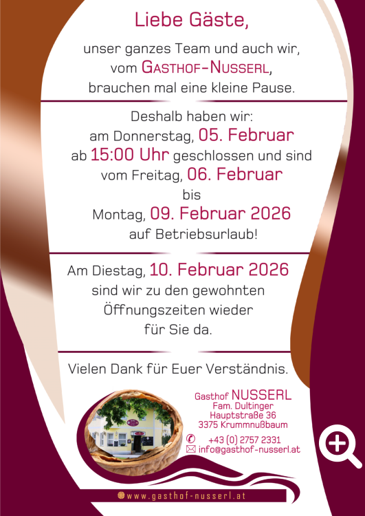 real by Gasthof NUSSERL, Fam. Dultinger, 3375 Krummnußbaum - Copyright 2025